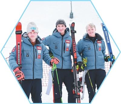 挪威运动员在河北崇礼万龙滑雪场合影。